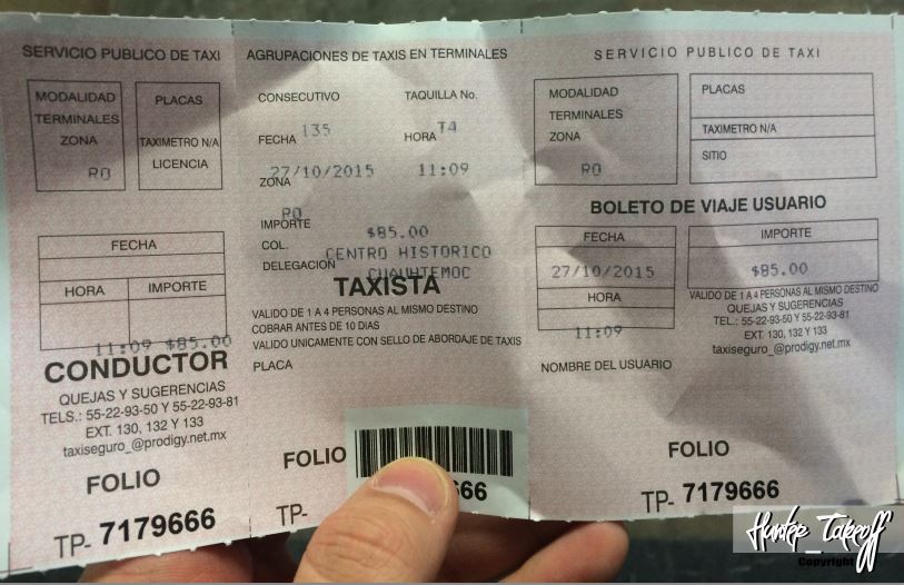 ตั๋วรถแท็กซี่จากต้นทางถึงปลายทาง ระบุราคาไว้ในตั๋วเลย