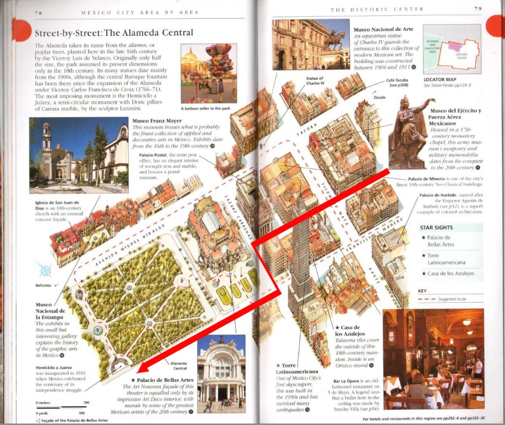 แผนที่เข้าสู่เส้นทาง Paseo De La Reforma เดินผ่าน Alameda Central จะมาตัดถนนเส้นนี้พอดี