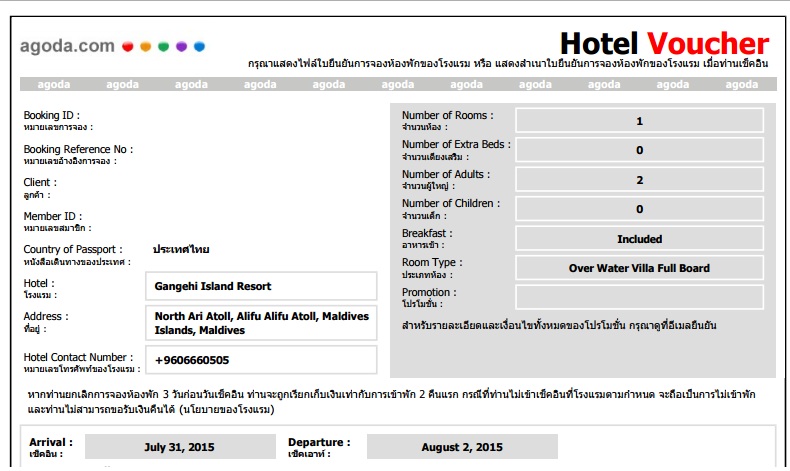 อันดับสอง...การจองที่พักรีสอท....สิ่งที่คำนึงถึงอันดับแรกเลยก้อคือ เงินในกระเป๋าคับ ตามสะดวกแล้วแต่กำลังทรัพย์ ผมใช้บริการการจองผ่าน Agoda เลือกดูอยู่หลายเกาะ...สุดท้ายมาจบที่ Gangehi Island Resort เนื่องจากเป็นเกาะเล็กๆ อยู่ไม่ใกล้ไม่ไกลนัก...แต่หลักๆ คือได้นั่ง Sea plane ตามที่ตั้งเป้าหมายเอาไว้....เพิ่มเติมนิดหน่อยนะคับ...หากเราจองที่พักเองไม่ผ่านทัวร์...ควรเลือกแบบ All include ไปเลยนะ...เพราะอาหารบนเกาะ ถือว่าแพงมากสำหรับมนุษย์เงินเดือนอย่างผม...สมมุติเช่น...น้ำดื่มขนาด 1.5 ลิตร บ้านเราอย่างแพงก้อ 15 บาท ที่นู่นน...เป็นร้อยคับ...เพราะฉะนั้น..จัดอาหารไปเลย 3 มื้อรวมไปในราคาห้องพัก และสิ่งที่อยากบอกอีกอย่างคือ หากเราต้องการนั่ง Sea Plane เราต้องจ่ายค่าตั๋วเพิ่มจากราคาห้องพัก ซึ่งเราต้องไปจ่ายให้กับทางรีสอทตอนวันไปถึง หรือจ่ายตอนเช็คเอ้าท์ก่อนกลับ....ซึ่งแน่นอน เกาะไหนอยู่ห่างไกลจากสนามบินแม่เท่าไหร่ ตั๋วก้อย่อมมีราแพงตามไปด้วย...ไม่อยากจะบอกว่ามันแพงกว่าตั๋วเครื่องบินไปกลับ BKK-MEL อีกนะคัชเหม่....ดังนั้นลองคำนวณงบประมานกันก่อน ดูราคาตั๋วว่าเรารับได้ที่เกาะไหนนะคัช... เสดแล้วจองเลย....