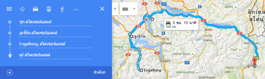 วันที่ 2. Zug - Luzern - Engelberg - Chur (269 Km.) ลูเซิร์นแวะ 2 จุด (Lion Monument กับ Chapel Bridge) แล้วอ้อมไป Engelberg เพื่อขึ้น Titlis ก่อนขับไป Chur