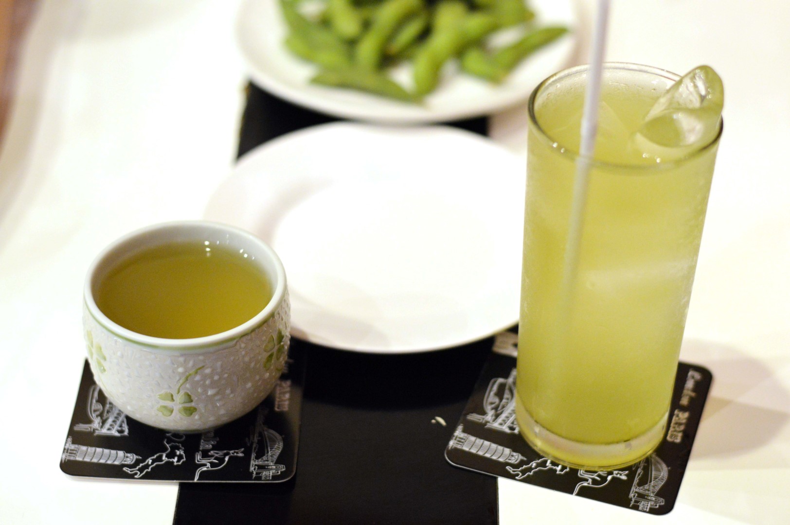 ที่นี่จะมี ชาเขียวร้อนและเย็นบริการฟรี ศรีภรรยาผมชอบ ชาเขียวร้อนของที่นี่ เพราะเค้าบอกว่า หอมและรสชาติไม่เข้มไม่อ่อนเกินไป ส่วนตัวผมนั้นชอบแบบเย็นครับ พอสั่งอาหารไป พนักงานเค้าจะเอา ถั่วแระญี่ปุ่นมาเสิร์ฟให้ทานเล่นก่อน ถั่วแระที่นี่จะเป็นแบบร้อนนะครับ เค้าจะเอาไปลวกก่อน ส่วนใหญ่ที่ผมเห็นจะมาแบบเย็น คือฟรีสมา แล้วเข้าเวฟละลาย แต่ที่นี่ เอามาลวกเลย โรยเกลืออ่อนๆ อร่อยไปอีกแบบ