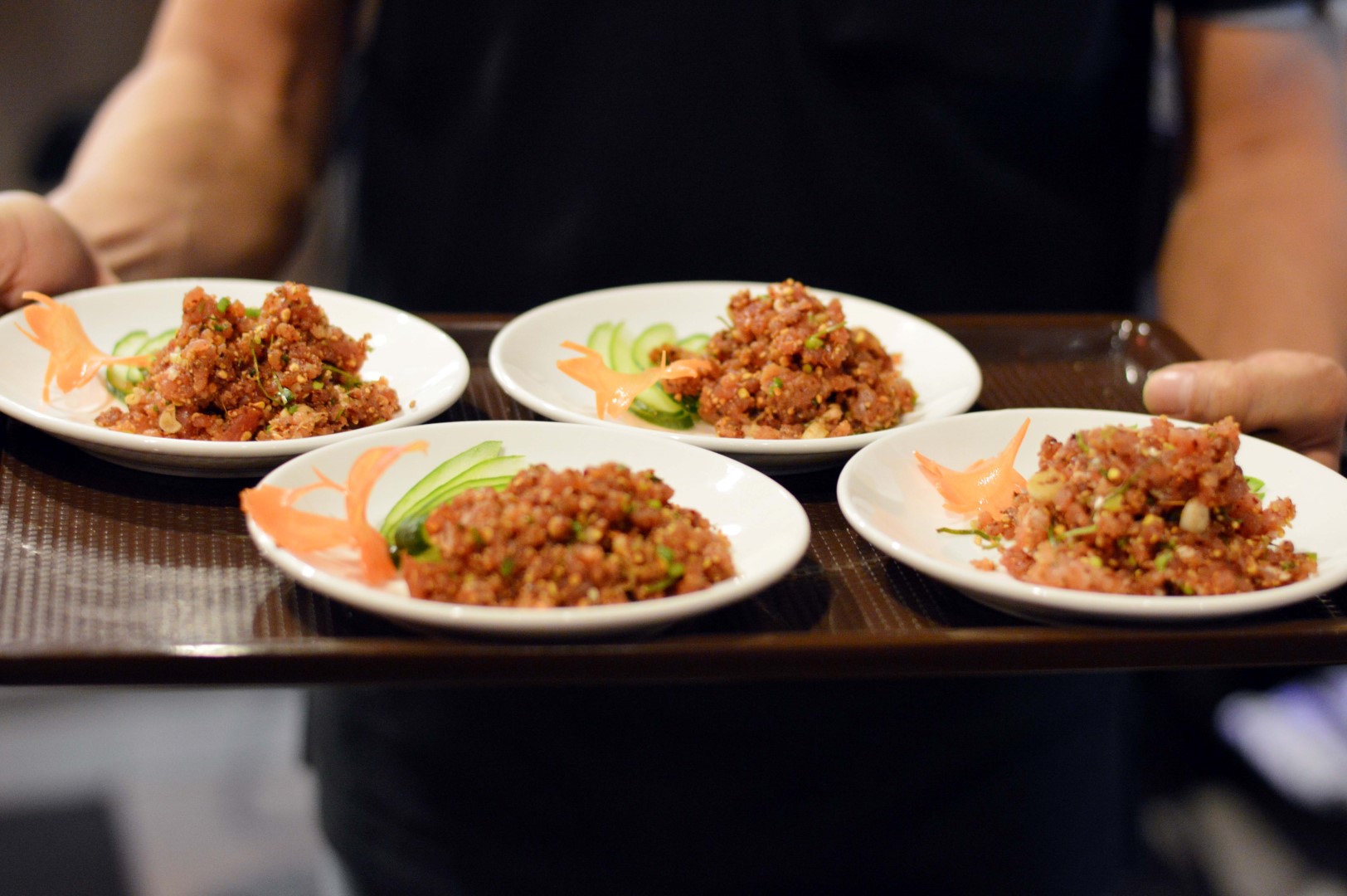 หลังจากนั้นไม่นาน พี่เจ้าของร้านก็นำปลาทูน่า เมนูฉลองครบรอบ 1 ปี มาเสิร์ฟให้ทานก่อน