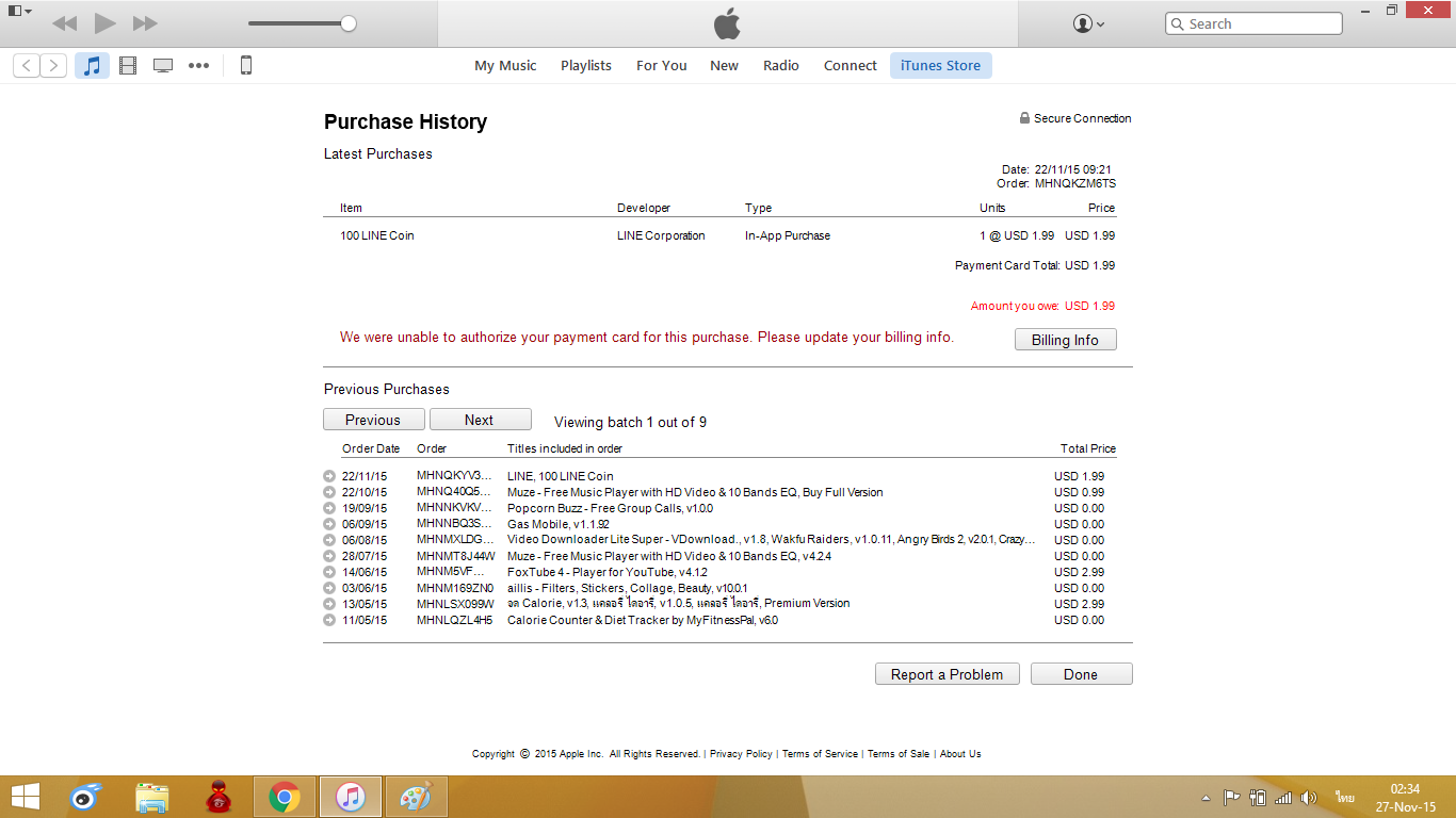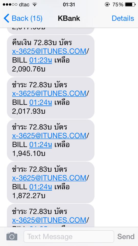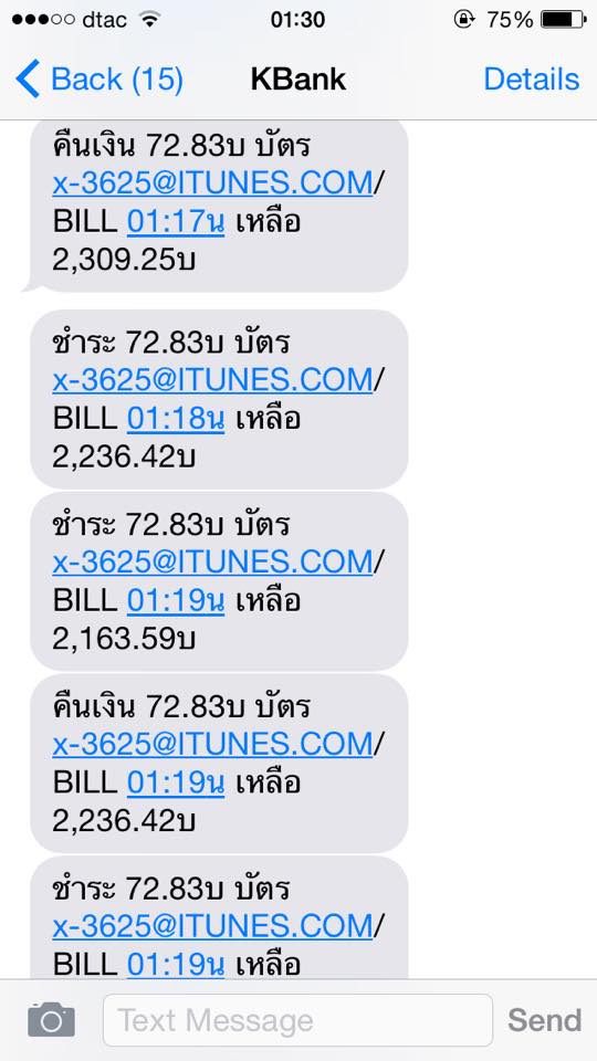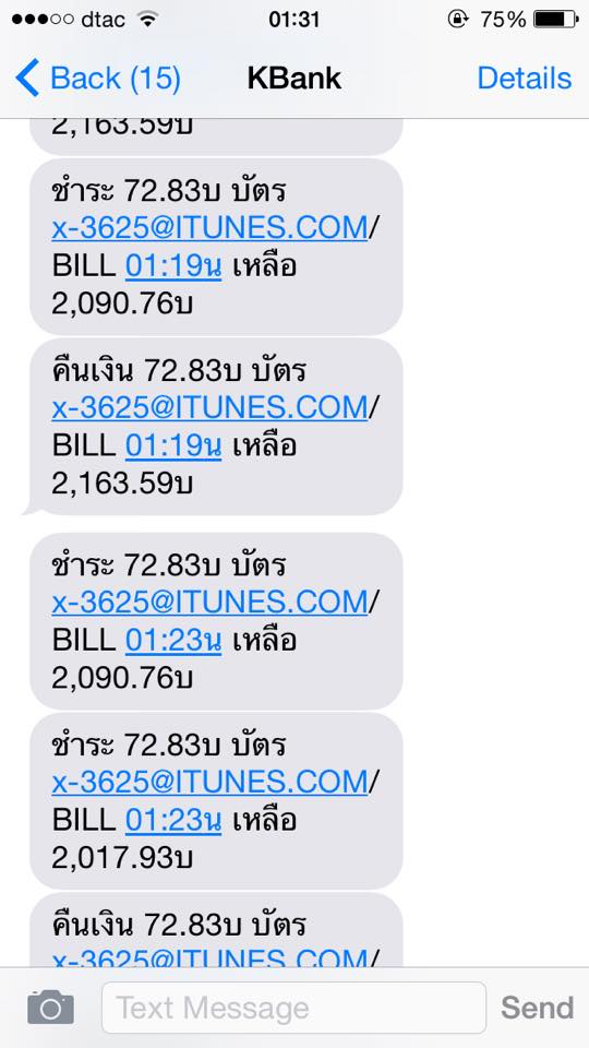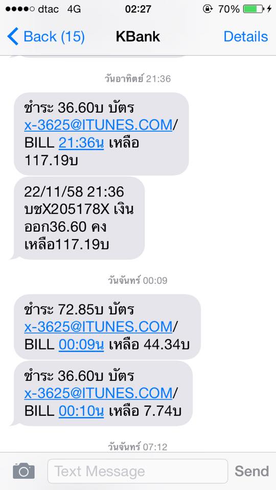 คือวันนี้จะอัพเดทแอพครับปรากฎว่ามีbilling problem เพราะ5วันก่อนให้แฟนยืมไอดีจ่ายค่าcoinsในไลน์ไม่พอจะหักค่าภาษี(ลืมคิด)แต่แฟนก็ได้สติ๊กเกอร์แล้วนะครับก็เลยติดลบประมาณ72บาท แต่ว่าวันนี้พึ่งเอาเงินเช้าแต่ก็ไม่ได้มีการหักเงินจากบัญชีนะครับ จนกระทั้งเริ่มกดอัพเดทแอพและมีbilling problem พอกดยืนยันรหัสบัตรVISAไปตามปกติก็ขึ้นว่า payment processing is temporarily unavailable. please try again later กดซ้ำไปซ้ำมาหลายครั้งก็ยังไม่มีอะไรเกิดขึ้น แล้วอยู่ๆข้อความก็รัวเลยครับ แล้วตอนนี้เวลา2.39ผมก็ยังไม่ได้เงินคืนเลยครับ แถมยังขึ้นว่าไม่ได้หักเงินจากบัญชีอีก รบกวนผู้รู้ช่วยทีนะครับ