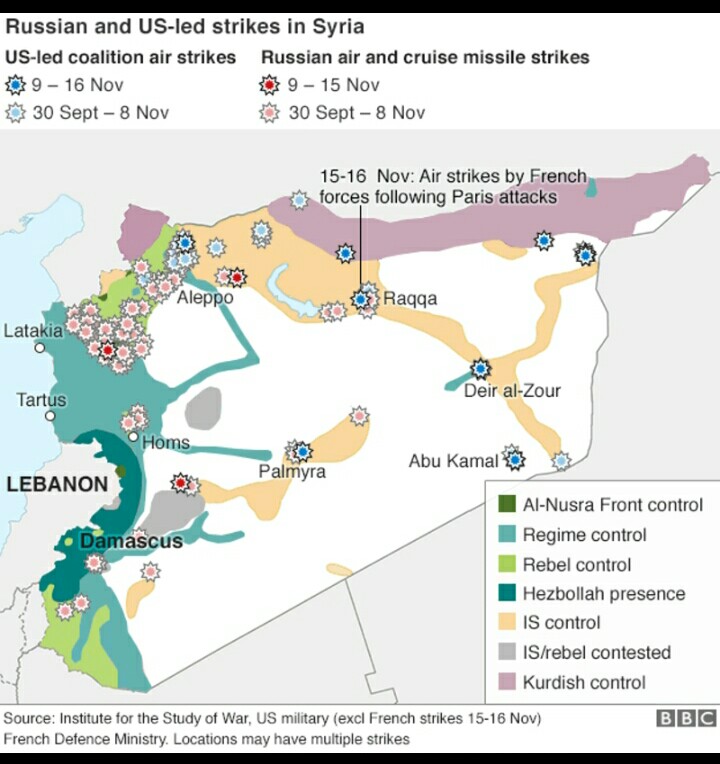 แผนที่บริเวณที่เกิดการสู้รบกันในซีเรียจากBBC.