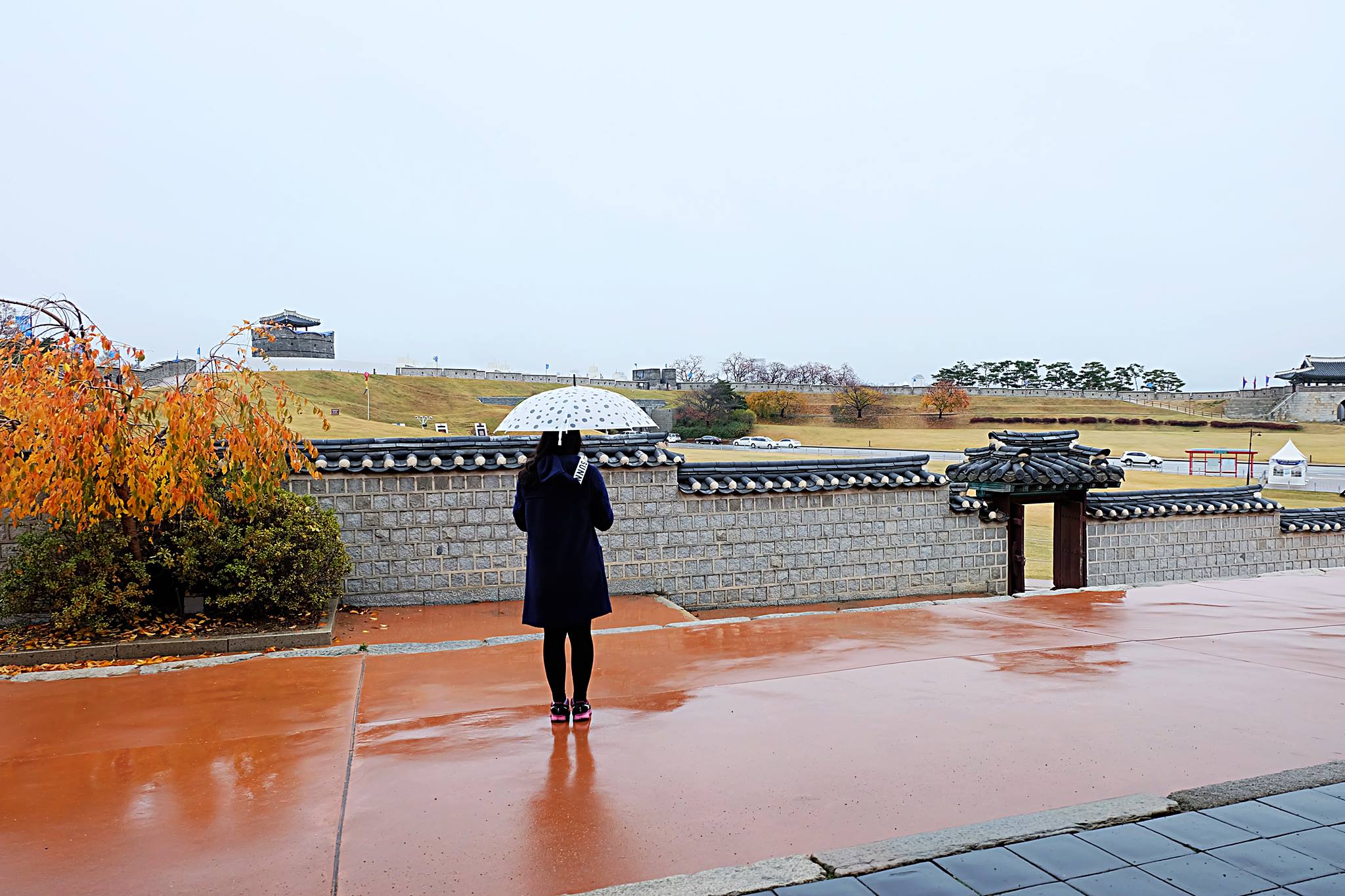 รูปนี้ถ่ายที่ Hwaseong Fortress ที่เมือง Suwon ค่ะ คือที่ไปเพราะเป็น UNESCO world heritage เราชอบเที่ยวแนวนี้อยู่แล้ว ดูสถาปัตยกรรม ประวัติศาสตร์ เดินอ่านคำบรรยายไปเรื่อยๆ เราไม่ได้บอกว่าไม่ควรไปนะคะ ถ้าถามว่าสวยไหม มันสวย แต่คุ้มกับการเดินทางไป-กลับ 4 ชม. ในอากาศที่หนาวมากๆและฝนตกไหม บอกเลยว่า ไม่คุ้ม! (รถไฟ 2.5 ชม, บัส 0.5 ชม, เดินและหลง 1 ชม) อีกอย่างคือตอนนั้นเรากลัวมากค่ะ มันมีอีกทางที่ใกล้กว่าและมีคน แต่เราดันหลงไปเดินทางที่ไกลและไม่มีคน ข้างๆเป็นกำแพงและพงหญ้า ฝนตก ลมแรง เดินอยู่ 1 ชม.กว่า เกือบจะร้องไห้แล้ว เป็นการออกนอกโซลครั้งแรก กลัวกลับไม่รอด แต่ก็ยังเดินต่อไป คือตอนนั้นถ้าไม่เจอเราก็จะเดินต่อไปค่ะ ถ้าหลงก็หลงไปเลยอ่ะ โชคดีที่หาเจอ เป็นความดื้อที่แก้ไม่หายจริงๆ