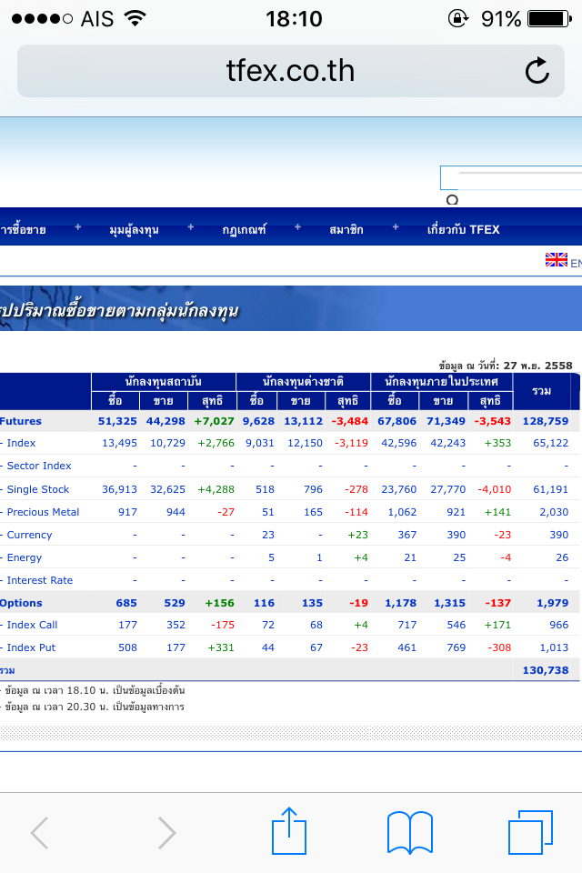 ยอด tfex วันนี้ 27/11/2558
