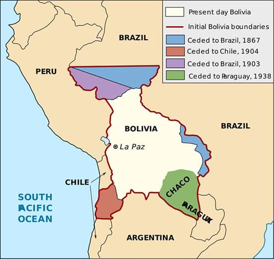ดูจากแผนที่แล้ว สมัยนั้นโบลิเวียไม่แข็งแกร่งพอที่จะสู้เพื่อนบ้านได้เลยเหรอครับ แม้แต่ปารากวัย ยังยึดดินแดนของโบลิเวียไปเป็นของตนเองซะครึ่งประเทศ