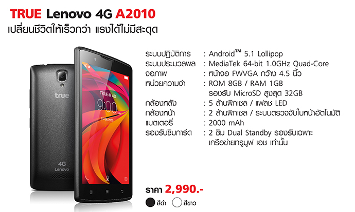 [CR] รีวิว True Lenovo A2010 สมาร์ทโฟนราคาเป็นมิตร จัดมาแล้วก็ลองเล่นซักหน่อย...