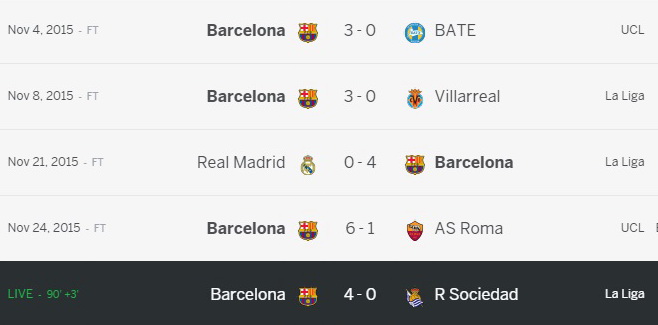 ผลงาน 5 นัดหลังของ Barcelona