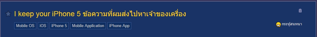 ตั้งกระทู้ ชื่อ I keep your iPhone 5 ข้อความที่ผมส่งไปหาเจ้าของเครื่อง