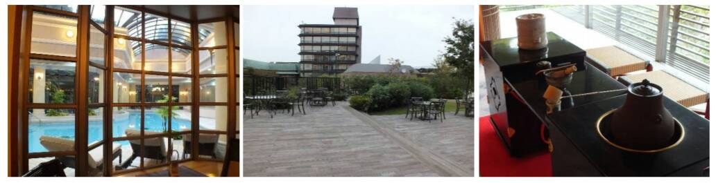 มาดูส่วนอื่นๆภายในโรงแรมกัน ภายในสวนของโรงแรมจะมีเจดีย์ที่สร้างจากไม้และด้านในมีพระพุทธรูปแบบญี่ปุ่นประดิษฐานอยู่ แล้วก็มีโบสถ์ขนาดเล็กสำหรับจัดพิธีแต่งงาน แต่ไม่ได้ลงรูปไว้เพราะว่าดันมีอีกาเกาะไม้กางเขนอยู่ มันเลยดูน่าสะพรึงมากกว่า อ้อลืมบอกไป คนภายนอกที่ไม่ใช่ลูกค้าของโรงแรมก็สามารถเข้ามาเดินชมสวนได้โดยไม่เสียค่าใช้จ่าย แล้วก็มีสปา สระว่ายน้ำ ห้องสำหรับเรียนชงชาด้วย แต่เราไม่ได้ลองทำไรสักอย่างเพราะมันต้องเสียเงินเพิ่มอะนะ