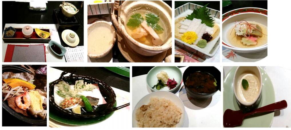 กลับมากินข้าวเย็นที่โรงแรมกัน วันนี้ได้กินอาหารญี่ปุ่นแบบจัดเต็ม เห็นเขาเรียกว่า Kaiseki จริงๆแล้วในชุดจะมีปลาดิบด้วย แต่เรากินไม่ได้เลยเปลี่ยนเป็นหัวไชเท้าสดแทน (รูปที่ 3 ที่เห็นเป็นแท่งสีขาวๆ)