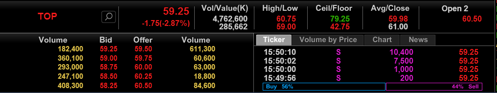 อย่าง TOP วันนี้อ่ะครับ ตั้งไม้ใหญ่มากไว้ช่อง offer ช่องเดียวด้วย พอราคาลง มันก้อขยับ Offer ลงมาด้วย
