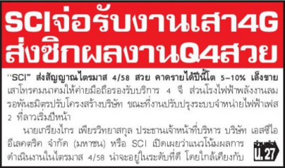 เมื่อวานบ่นถึงข่าว SCI มีข่าวเลย ต้องเก็บสักเพิ่มหน่อย Q4 เหมือนจะดูดี