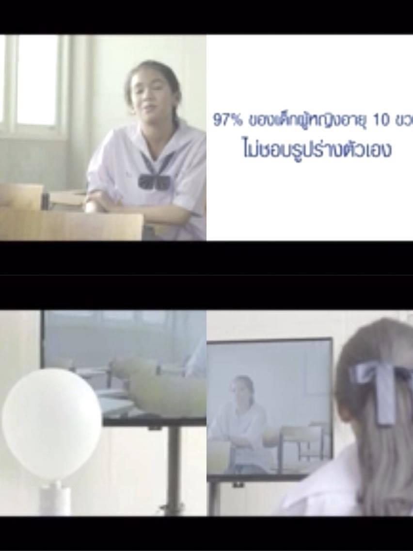“หนูคิดว่าผู้หญิงก็เหมือนกันหมดแหละพี่ ไม่มีใครคิดว่าตัวเองสวยหรอก” เสียงของน้องผู้หญิงตัวเล็กๆ พูดกับกล้องขณะถ่ายทำโฆษณาของ Dove ข้อมูลในคลิปโฆษณาให้ข้อมูลว่า 97 เปอร์เซ็นของเด็กผู้หญิงอายุ 10 ขวบไม่ชอบรูปร่างตัวเอง ในคลิปได้มีการสัมภาษณ์น้องๆ ว่าคิดว่าตัวเองสวยไหม แน่นอนส่วนใหญ่ตอบว่า “ไม่” และต่างก็ให้เหตุผลต่างกันเช่น ผมหนูหยิกบ้าง ผิวหนูดำบ้าง เป็นต้น พอสัมภาษณ์เสร็จเด็กๆ จะได้ลูกโป่งของตัวเองพร้อมทั้งนั่งดูเพื่อนคนอื่นสัมภาษณ์ต่อ ทุกครั้งที่ตอบด้วยความไม่มั่นใจลูกโป่งจะแฟบและเล็กลง ในทางกลับกันมีน้องคนหนึ่งตอบว่า “หนูคิดว่าหนูสวย” พร้อมรอยยิ้ม ลูกโป่งของน้องคนนั้นพองและใหญ่ขึ้น น้องที่ได้ลูกโป่งแฟบๆ มองลูกโป่งของเพื่อนที่ใหญ่และพองตัว และนั่นคือสัญลักษณ์ที่แสดงออกถึงความมั่นใจในตนเอง