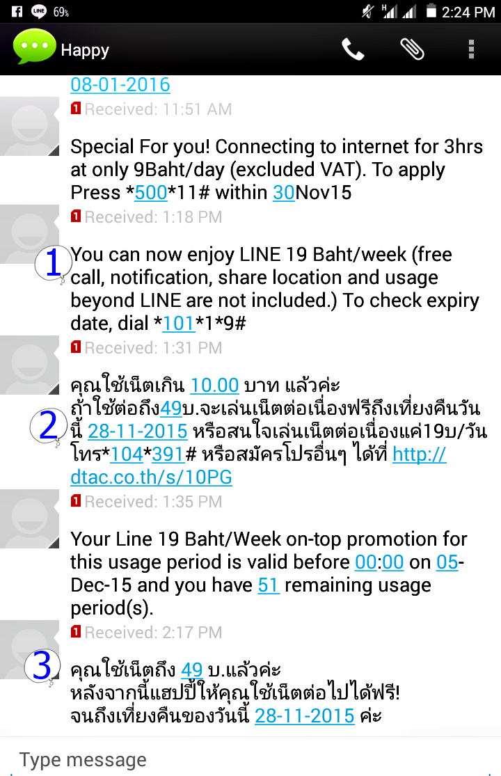 นี่เป็นครั้งที่สองแล้วครับที่ผมมาโพสต์กระทู้ปัญหาเดิมๆ เบอร์ผมเป็นแบบเติมเงินใช้มานานมากแล้ว10กว่าปีเติมเงินมาตลอด ไม่กี่วันผมสมัครโปร19บาทต่อ1สัปดาห์ ใช้โปรแกรมไลน์ครับสมัครเสร็จมีข้อความส่งมา(หมายเลข1) เช็คดูเงินโดนหักไปแล้ว19บาท เลยต่อเน็ตเล่นไลน์ เล่นได้สักพักมีข้อความเตือนมา (หมายเลข2)ว่าท่านใช้เน็ตเกิน 10บาทแล้ว เล่นต่ออีกสักพักมีข้อความเตือนมา (หมายเลข3)ว่าท่านใช้เน็ตเกิน 49บาทแล้ว....อ้าวแล้ว19บาทต่อสัปดาห์ที่หักผมไปล่ะ ไม่ได้เอามาใช้ในโปรนี้เหรอ เล่นไลน์อย่างเดียวจริงๆครับไม่ได้เล่นอย่างอื่นเลย สรุปว่าผมโดนหักไปครั้งแรกที่สมัคร 19บาท แล้วมาโดนหักอีกตอนเกิน49 บาทมันคืออะไรครับ..