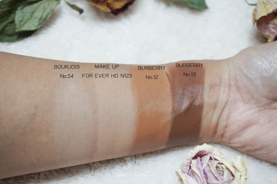 ตัวที่เงาๆ โกลว์ๆ ฉ่ำๆ สุดจะเป็น BURBERRY รองลงมาเป็น MAKE UP HD และ Boujois