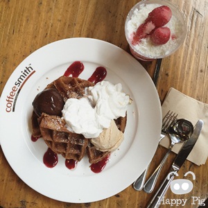 ++ใครมาย่านนี้ต้องไม่พลาดมาถ่ายรูปกับร้านกาแฟ Coffee Smith แต่นี้ครั้ง 2 ละเลยมานั่งกินขนมกินน้ำกันชิลๆดีกว่า สั่งWaffle กับ Frappe มา อร่อยทั้ง 2 อย่างเลย นั่งร้านนี้เพลินดี บรรยากาศดี เพดานสูง มีโต๊ะที่เป็น TV Touch Screen ด้วย จะเล่นเกมส์ ดูหนัง เล่นเน็ตระหว่างกินขนมก้เพลินไปอีกแบบ เวลามันผ่านไปเร็วมาก นั่งดูคนเดินเข้าออกจากร้าน นั่งมองฝนตกปรอยๆ ดูใบไม้ร่วงหล่นลงจากต้น อากาศเย็นสบาย สูดหายใจเข้าออกเต็มปอด มันเป็นความรู้สึกช่วงนึงที่สมองโปร่งมากก นี่สินะเวลาพักผ่อนสมอง ร่างกายและจิตใจ