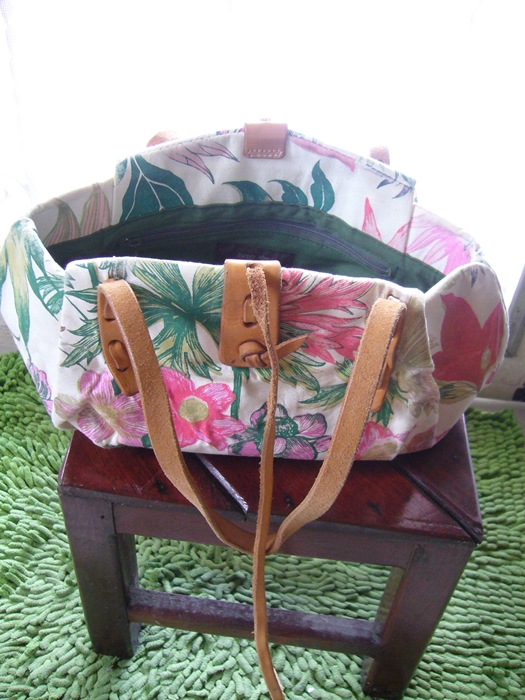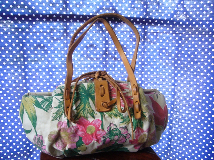 ::ใบแรก ยี่ห้อbardot roseลายดอก หูหิ้วทำจากหนังแท้ เก๋ๆด้วยวิธีการปิดกระเป็าแบบผูก