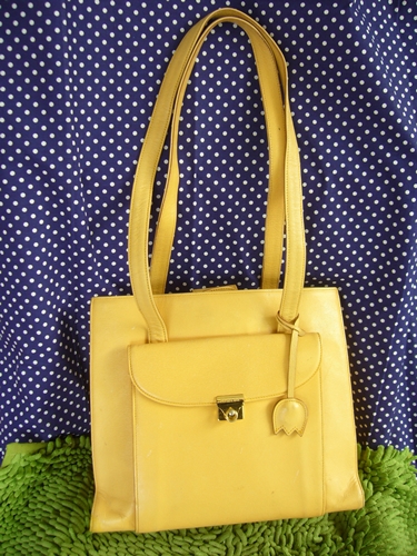 ::ใบที่2 กระเป๋ายี่ห้อPrivate Label สีเหลือง มีสายห้อยทิวลิปสำหรับคล้องกุญแจได้ สภาพ60% มีรอยบุบจากการใช้งานก้นกระเป๋า4มุมเล็กน้อย