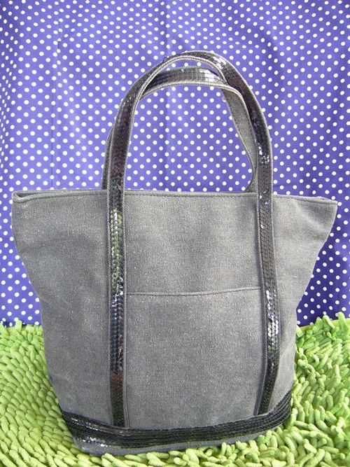 ::ใบที่5 กระเป๋าผ้าสีเทา ปักเลื่อมที่ดำ