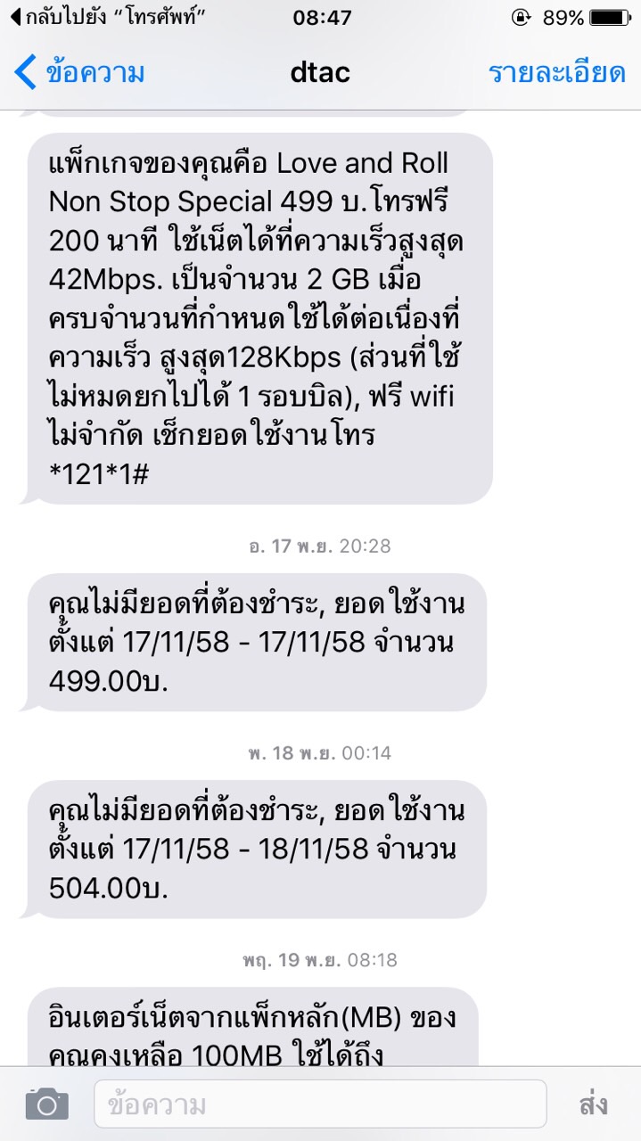 ปัจจจุบันใช้ Dtac : love & roll เหมาจ่าย 1,499 บาท โทรฟรีทุกเครือข่าย 24 ชม. + 3g/4g 15 GB เหลือยกไปเดือนต่อไปได้ + Free Wifi ครับ เนื่องจากมีปัญหาเรื่องสัญญาณในพื้นที่ ที่ทำงานอยู่ จึงขอรบกวนสอบถ