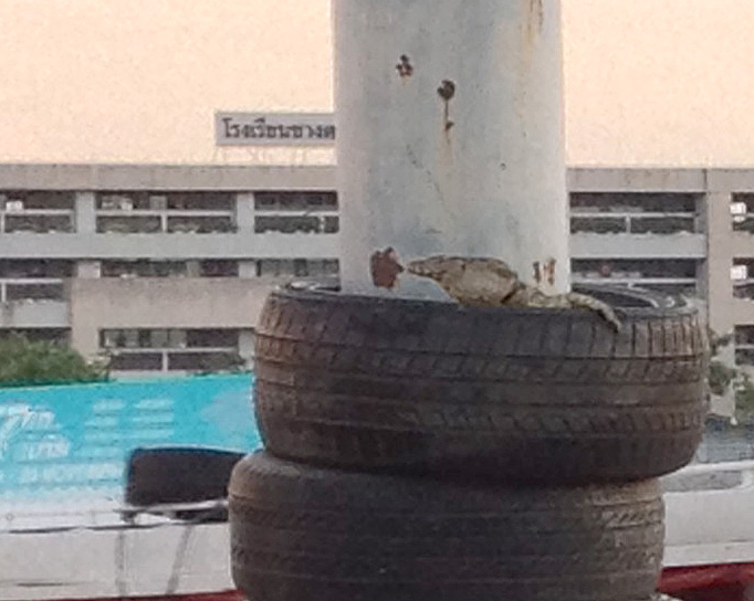 คือไปนั่งทานอาหารที่ยอดพิมานริเวอร์วอร์ค (ตรงปากครองตลาด) แล้วไปเห็นน้องตัวนี้โผล่ขึ้นมาจากเสา ตรงคอเหมือนมีห่วง หรือปลอกคอรัดอยู่ แล้วเหมือนเค้ากำลังจะคาย หรือ กินอะไรบางอย่างแต่มันติด ดูเค้าทรมานมากเลยครับ ผมไม่รู้ว่าต้องแจ้งหน่วยงานไหนที่พอจะช่วยเหลือเค้าได้บ้างครับ น่าสงสารมากครับ