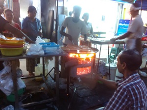 อันนี้เด็ดค่ะ มันคือเครื่องในหมู ต้ม จิ้มน้ำซอส (กระปุกสีแดง) รสชาติออกเผ็ดๆหวานๆ รสชาติดีที่สุดเท่าที่กินมาในปริปนี้ค่ะ ขัดใจอย่างเดียวคือ หั่นมาชิ้นเล็กมากกกก อยากจะลากไส้หมูในหม้อมาหั่นชิ้นโตๆ กลัวแม่ค้าเรียกตำรวจมาจับ 5555 อันนี้ ราคาเค้าจะนับเป็นไม้หลังทานเสร็จ สองคนโดนไป 6000 จ๊าด ประมาณ 200 กว่าบาท เหมือนจะดีแต่ ไม่อิ่ม.....