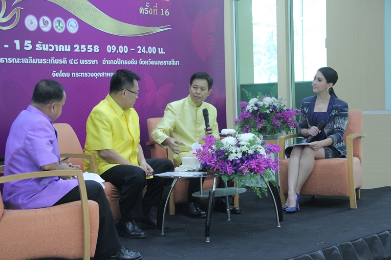 เป็นงานแถลงข่าว “เทศกาลไหมไทย โคราช ครั้งที่ 16 (The Silk Festival 2015)” ฟังแล้วได้ความว่า กระทรวงอุตสาหกรรม สนับสนุนผ้าไหมไทยให้มีศักยภาพ สนับสนุนการสร้างภาพลักษณ์ที่ดี ยกระดับภูมิปัญญาไทยให้เป็นที่ยอมรับในระดับสากล ซึ่งงานครั้งนี้จัดขึ้นภายใต้แนวคิด “เสน่ห์แห่งเส้นไหม ร้อยสายใยสู่สากล”