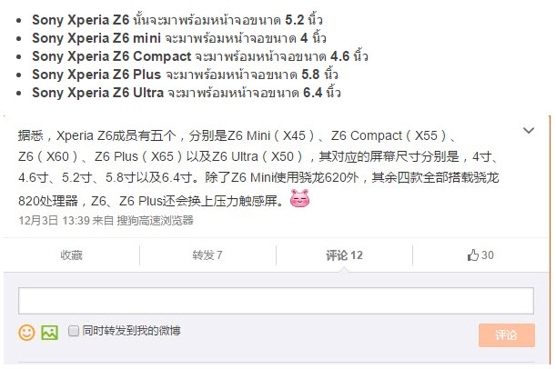 http://www.phonearena.com/news/AnTuTu-posts-screen-sizes-names-and-more-for-the-Sony-Xperia-Z6-line_id76375
