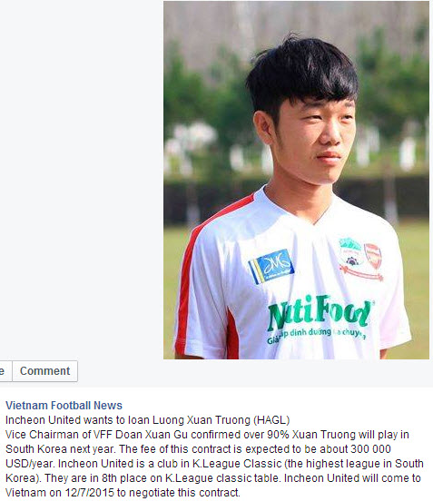 เห็นในเพจอาเซียน แฟนเวียดนามกรี๊ดกร๊าดกันใหญ่เลย แก้ไขเป็น U21 VietNam - Luong Xuan Truong จะย้ายไปเล่น K.League Classic ด้วยสัญญายืมตัวมูลค่า300 000 USD/year หรือประมาณ10,500,000บาทต่อปี แล้ว U19ไทยอย่างวรชิตจะได้ไปมั้ย? ถ้าได้ไปสัญญาควรมีค่าเท่าไรดี?