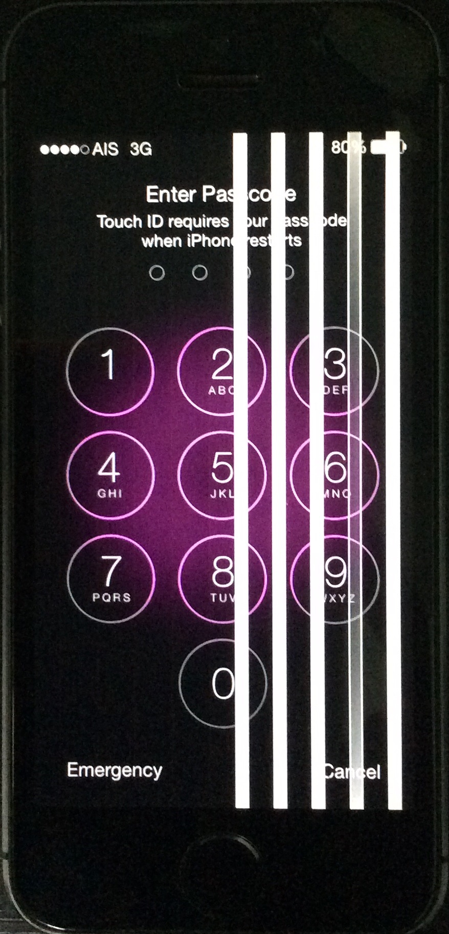 5s จาก dtac ซื้อมาเกือบ2ปีแล้วค่ะ ตอนนี้สภาพหน้าจอเป็นแบบในภาพ touch ก็รวนๆ ตอนแรกมันเหมือนเป็นแค่เส้นๆอยู่ที่ขอบด้านล่างค่ะ...ต่อมาข้างๆเริ่มมีโค้งๆสีดำ (touch ยังใช้ได้ปกติ) แต่ตอนนี้เดี้ยงหนัก t