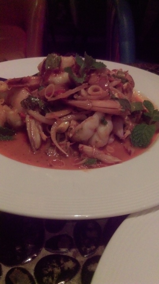 ครั้งแรกกับการนัดเดท ร้านอาหารระดับ4.3 ดาวจากFB Page บรรยากาศในร้านดูดีมาก พูดเเลยว่าช๊อบ ชอบ นั้งดื่มนั่งคุยไปสักพักก็ถึงเวลาอาหารเย็น เมนูอาหารน่าตาน่ารักมาในรูปแบบสูทสีม่วงดำ ราคาอาหารไม่แพง หน้าตาน่ากิน มีให้เลือกทั้งอาหารไทยและเทศ ดิฉันเลือกสั่งอาหารไทย 3 อย่าง พล่ากุ้ง ต้มยำกุ้ง และหมูผัดกะปิ (จานนี้อยากกินมากกกกก)
