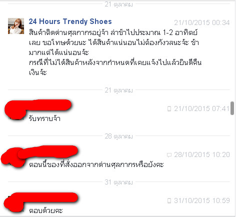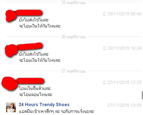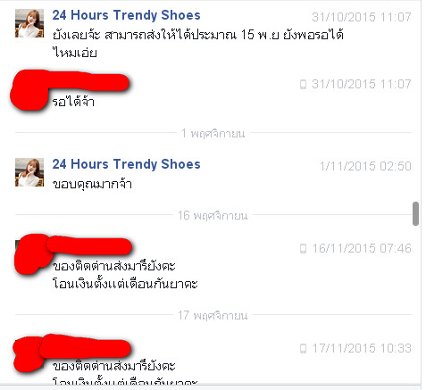 เตือนภัยสาวๆที่คิดจะสั่งสินค้าจากร้าน 24 Hours Trendy Shoes ซึ่งเป็นร้านพรีออร์เดอร์