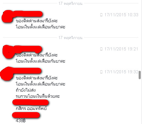 แฟนก็รอถึงวันที่ 16 พ.ย. 58 ก็ไม่มีการแจ้งว่าส่งหรือยัง จึงสอบถามไปอีกครั้ง