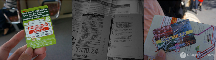 สาระ 3: การเดินทาง ที่ประหยัดที่สุดคือ ซื้อตั๋ว Kyoto City Bus หนึ่งวัน 3 ใบจ้า ขึ้นได้แต่รถบัส แต่เอาจริงๆน้อยมากที่จะขึ้นรถไฟ เพราะที่เที่ยวทุกที่เข้าถึงด้วยรถบัส ยกเว้นศาลเจ้าทางใต้ที่นั่ง JR ที่เหลือก็บัสอย่างเดียว (500 x 3 วัน = 1,500 เยน)