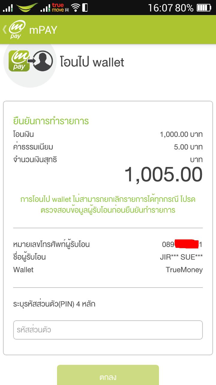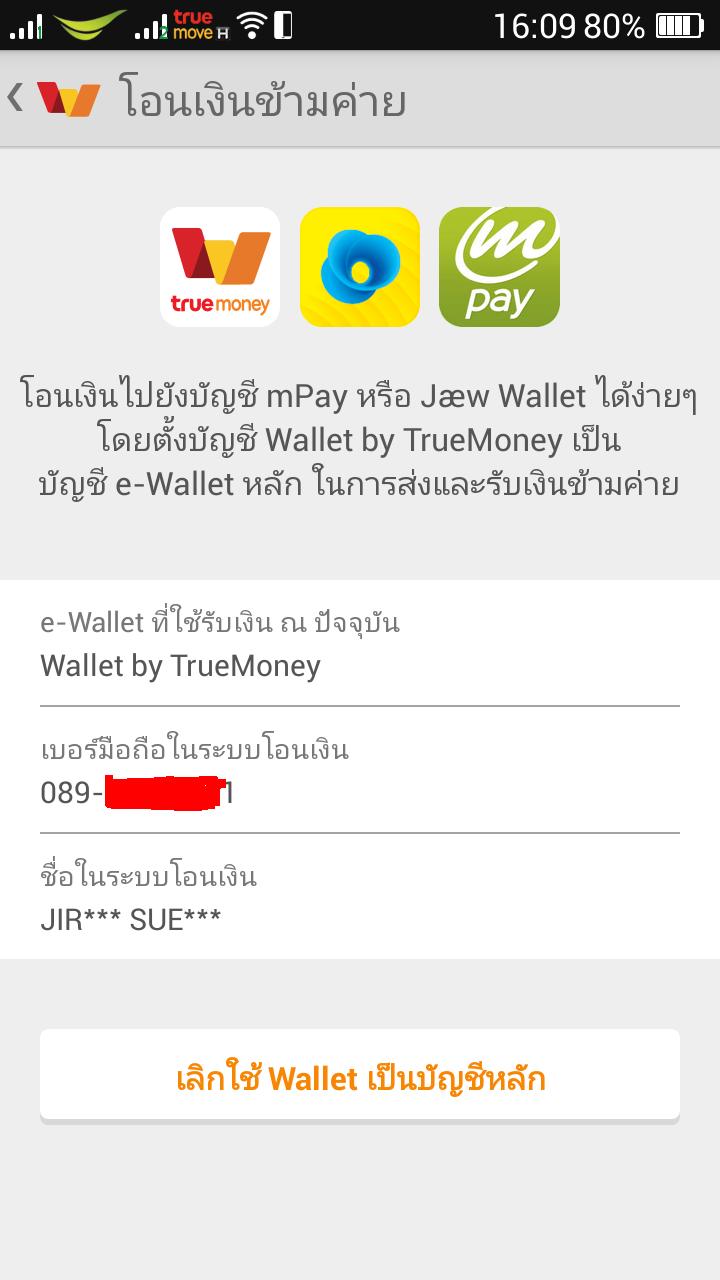 True money wallet ทำไมโอนเงิน เข้า Wallet อื่นไม่ได้