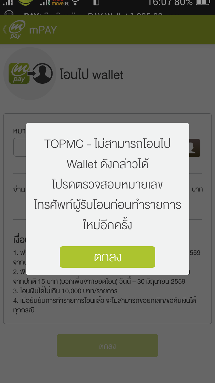 ทดลองโอนเงินจาก Mpay ไป Truemoney ไม่สำเร็จ ใครเป็นบ้าง?