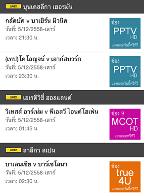 โปรแกรมถ่ายทอดสดฟุตบอลทางช่อง PPTV สัปดาห์นี้