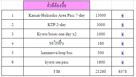 ราคาตั๋วทั้งหมดที่คิดตอนนี้คือ 21260Y