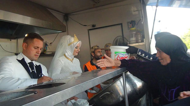 http://issue247.com/around247/turkish-bride-groom-spend-their-wedding-day-feeding-4000-refugees/
