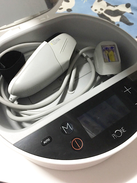 และสิ่งที่รินเจอคือ.. เครื่องทำ IPL ด้วยตัวเองที่บ้านค่ะ ซึ่งตอนนั้นรินก็เพิ่งรู้นะว่ามีเครื่องแบบนี้อยู่บนโลกด้วย รู้สึกโอเคกว่าถ้าได้ทำเองต่อเนื่อง ตอนนั้นคือสนใจมากๆ ศึกษาเยอะมาก มีขายในไทยหลายยี่ห้อเลยค่ะ กว่าจะเลือกได้ตัดสินใจอยู่นานมาก เพราะแต่ละยี่ห้อก็มีคำโฆษณาแตกต่างกันออกไป ราคาก็ไม่ใช่น้อย ยี่ห้อที่รินตัดสินใจกัดฟันซื้อมาคือ Pione ค่ะ เพราะเท่าๆ ที่ดูมีหน้าร้านในห้างค่อนข้างน่าเชื่อถือที่สุด เรากลัวจะไม่ได้ผลและทำหน้าพังเลยขอลงทุนหน่อยแล้วกัน ผ่อนเอา เจอคุณโมเมทำรีวิวไว้ แล้วเขาเล่าถึงพวกผลวิจัยการแพทย์จากเกาหลี ไปอ่านมาก็เลยค่อนข้างไว้ใจมากกว่ายี่ห้ออื่นๆ ที่ผลิตจีนค่ะ