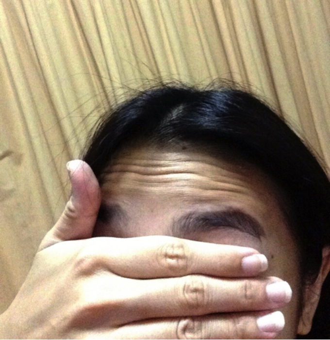 ดูริ้วรอยบริเวณหน้าผากดิ อาการหนักมากจนคลินิกเห็นถึงกับชวนโบท็อกซ์กันเลยทีเดียว เจ็บใจนัก!