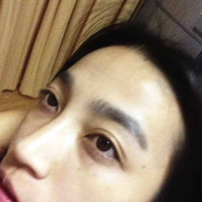 ส่วนนี่เป็นบริเวณหน้าผากถ้าไม่ย่นหรือขมวดคิ้วก็จะเห็นเป็นรอยบางๆ อย่าให้ย่นหน้าผากนะจ๊ะ พรึ่บบบบบ!! จนรองพื้นตกร่องกันเลยทีเดียว