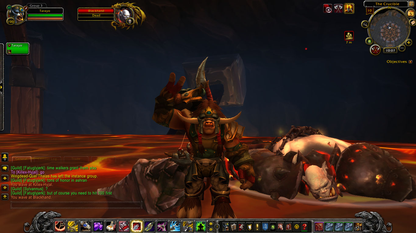 แม้แต่ขุนศึกออร์คดำผู้ที่ได้รับฐานะ warcheif คนแรกของ horde อย่าง warlord blackhand จะต้องมานอนตายต่อหน้าเท้า tarayo นักรบ tauren ผู้เก่งกาจ