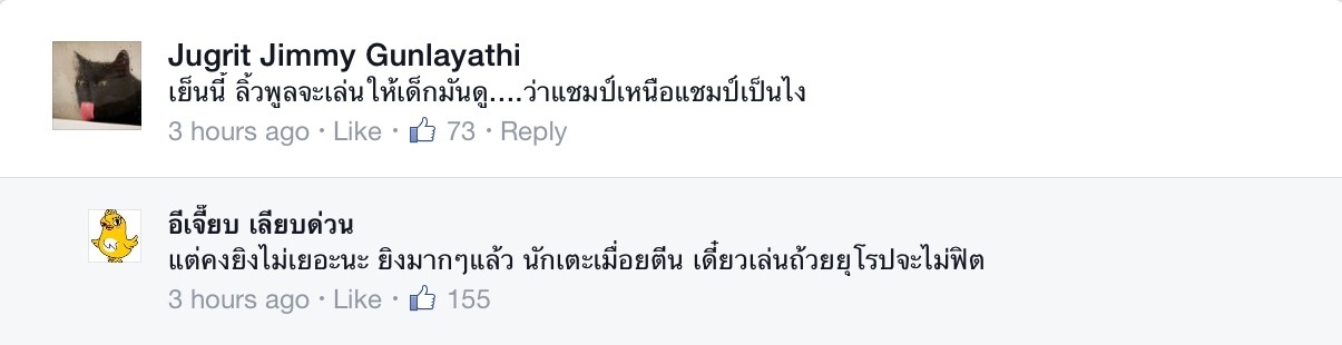 ขอขอบคุณแฟนๆบางทีม ที่ตั้งหลายๆกระทู้ เสมือนหนึ่งว่ายินดีกับลิเวอร์พูลจะคว้าแชมป์พรีเมียร์ลีก เส้นทางช่างสดใสเหลือเกิน แชมป์แน่ๆ อะไรประมาณนี้ คือนี่เพิ่งผ่านมาครึ่งฤดูกาลครับ ใจเย็นๆ ผมเชื่อเหลือเก