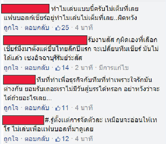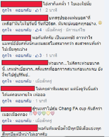 สงสารแฟนบอลมากกกก กี่นัดแล้ว เล่นแบบไม่ซ้อม ไม่ค่อยมีใจใดๆเลย แฟนบอลเค้าเสียเงินซื้อตั๋วมาเชียร์พวกคุณนะ ถึงจะเสมอ จะแพ้ถ้าเล่นเต็มที่ ยังไงก็เชียร์ต่อไป