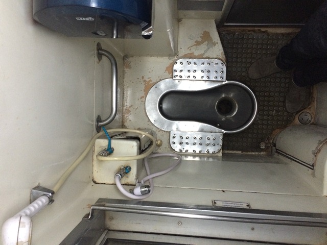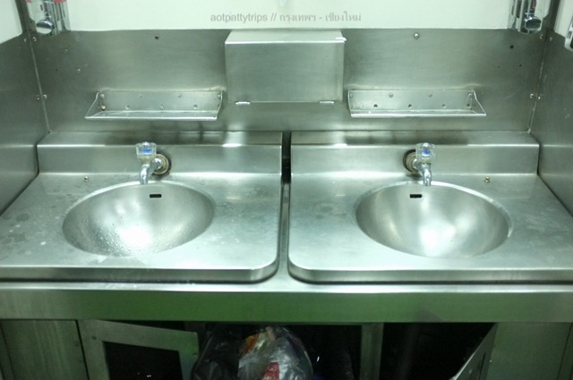 บนรถไฟมี อ้างล้างหน้า/ห้องน้ำ2ห้องแบบธรมมดากับแบบนั่งยอง แต่ถ่ายแต่แบบนั่งยองมาดุเอาเองแล้วกัน