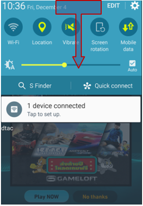 2. กดด้านบนสุดตรงเสา สัญญาณ 4G แล้วลากลง