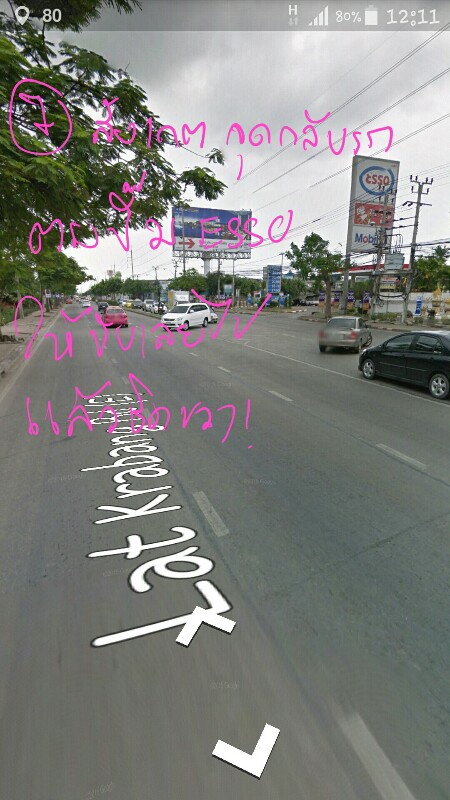 7. สังเกตุทางขวา จะมีจุดกลับรถที่มีปั๊ม ESSO + ศูนย์รถ Ford